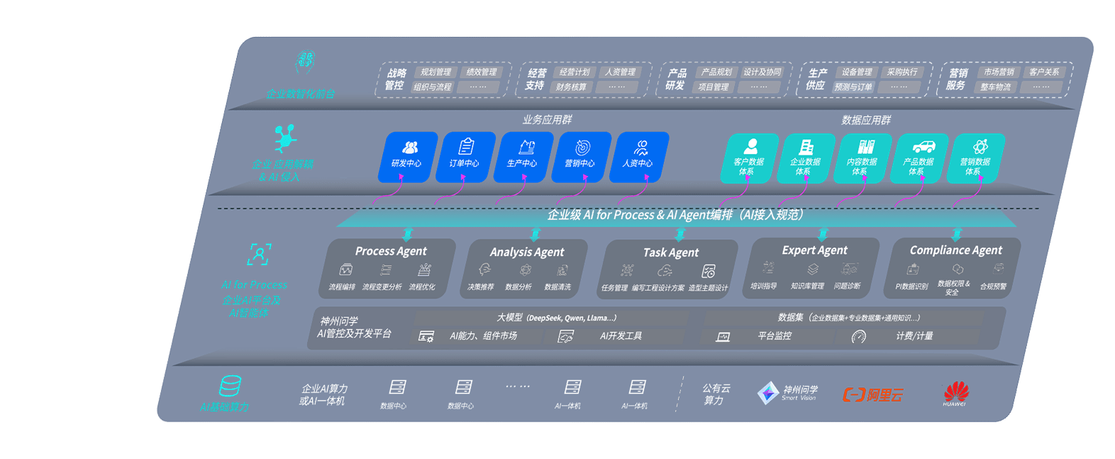 彩名堂问学智车解决方案是一套基于AI技术的汽车行业智能化系统,,,覆盖从底层算力到顶层AI应用的全栈方案。。方案由算力层、、模型层和应用层组成:算力层,,,方案支持多种一体机配置,,具备云端灵活部署、、、、多云适配以及动态优化计算资源的能力;模型层,,彩名堂问学平台版提供了企业级AI应用一站式构建与管理平台,,支持基于后训练强化技术的汽车企业专属模型的训练、、评测和运营;应用层,,,彩名堂问学DeepSeek版提供包括超级员工、、、、智能招采、、、智能营销、、、、智能客服、、AI for BI等一系列解决方案,,可助力汽车行业实现数字化转型,,,,让管理更智能、、响应更敏捷。。。
