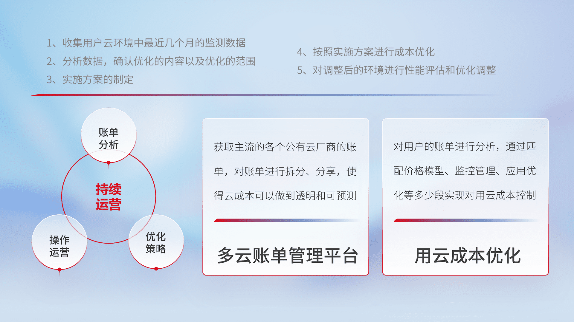 监控业务系统资源开销,,对资源的消耗精确计量,,,实现费用的透明化管理,,不断提升资源使用率,,,调整资源购买方式,,,降低资源费用成本,,用云成本可预测、、、用云费用可优化,,,,云资源配额有据可依。。